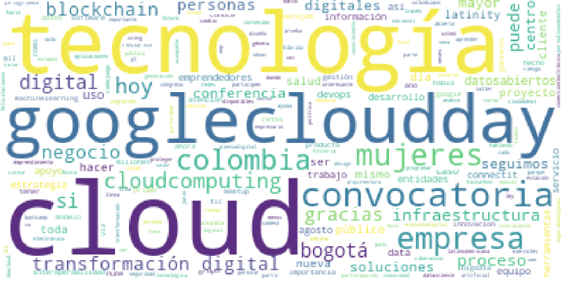 En esta publicación mostramos como hacer un análisis de palabras simple denominado WordCloud, que muestra una imagen con las palabras más frecuentes en un texto, dándoles relevancia por tamaño. Usaremos como fuente textual los tweets de una determinada cuenta, que han sido previamente descargados en csv.